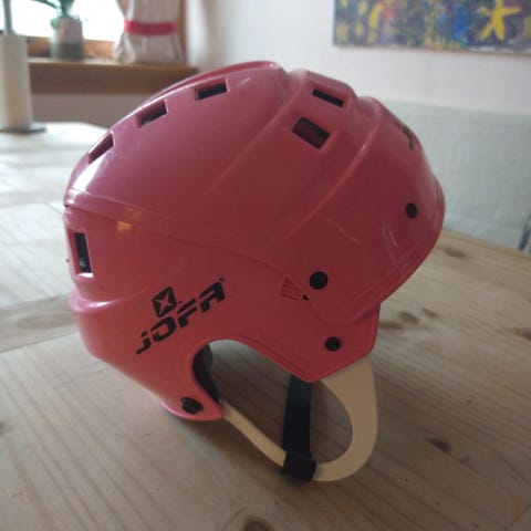 Selger en lite brukt JOFA barnehjelm. Perfekt til ishockey/skøyter. Ifølge internett skal størrelsen tilsvare M: 51 - 55,5 cm. Selges for 150kr.