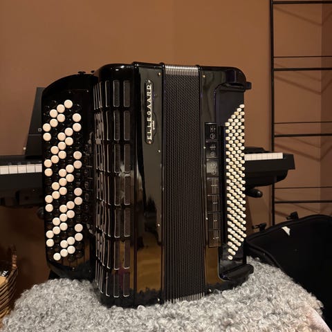 Borsini trekkspill med midi. Trekkspillet er fra midten av 1990-tallet, midi ble installert av Ringebu musikk i 2024