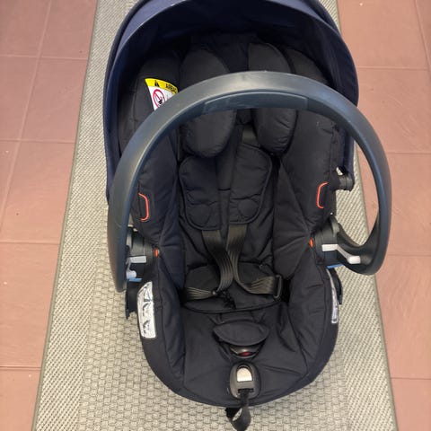 Pent brukt bilsete med nyfødtinnlegg. Kan festes direkte på Stokke understell. Vi har brukt den på Stokke Trailz, men barnet har nå byttet til et større sete.