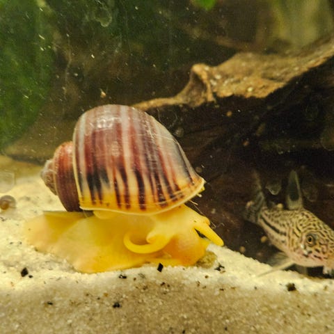 Selger sunne og aktive posthornsnegler. De er dekorative, lette å få til å trives, og gjør en kjempejobb med å holde akvariet rent for alger og fôrrester.