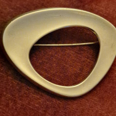 David-Andersen brosje i unisex design. Brosjen har et dekorativt mønster med oransje detaljer.