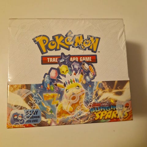 Selger en Pokémon Scarlet & Violet Surging Sparks booster box, med 36 booster pakker. Pakken er uåpnet og forseglet