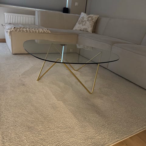 Nydelig design bord med helt ny glassplate, ligger ennå i forpakning. Følger også med glassplate som er brukt.