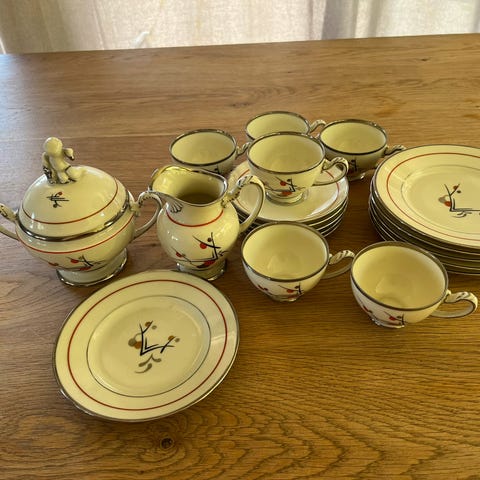 Det er noe slitasje i glasur og noe krakelering, men alle delen er hele. Selges samlet kr. 450,- ved henting.