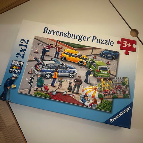 Ravensburger 2x12 puslespill, designet for barn over 3 år. Puslespillene inneholder 12 brikker hver med barnevennlige motiver og farger, egnet for tidlig utvikling av motoriske ferdigheter og problemløsning.