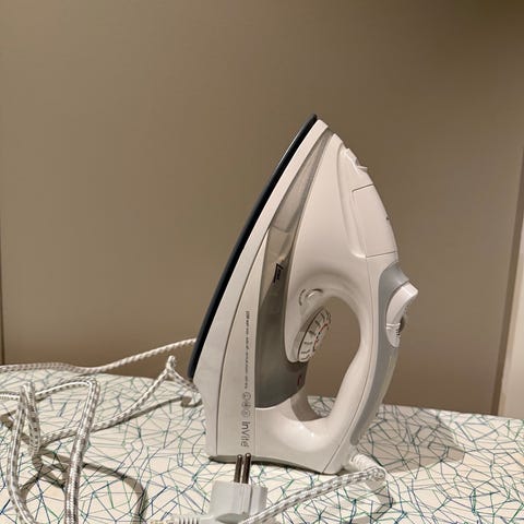 Philips strykejern med blå og hvit farge. Utstyrt med justerbar temperaturkontroll for ulike tekstiltyper. Innebygd vanntank for dampfunksjon. Ergonomisk håndtak og ledning for enkel bruk.