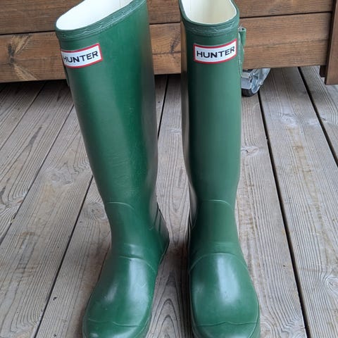 Regnstøvler fra Hunter i grønn, str 37. Kun prøvd på inne og fremstår som nye. Nypris 1800,-