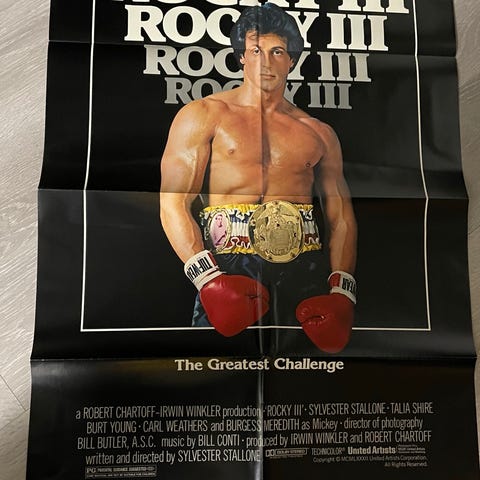 Sett med seks film banners av Stallone selges pr stk