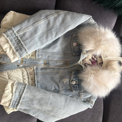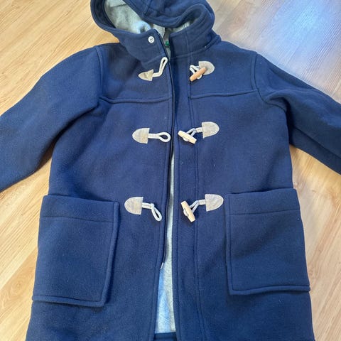 Benetton jakke for jente i størrelse 128. Jakken er tykk, som ny og har fast hette. Den har knappelukking og glidelås.