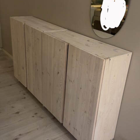 bredde: 86, dybde: 30 høyde: 160 Heltre eik og eikefiner, hvitoljet, 5 hylleplater