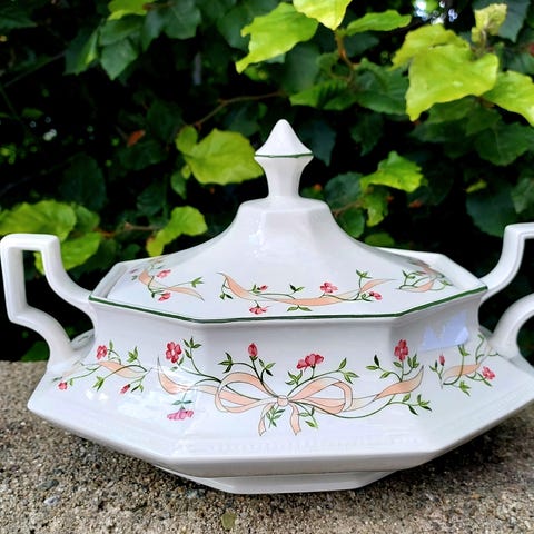 Vakkert antikt stort håndmalt middagservise. Trolig noe tidlig PP, før stempling