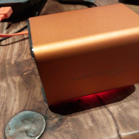 Music Angel høyttaler med kabeltilkobling. Størrelse 50x50x75 mm