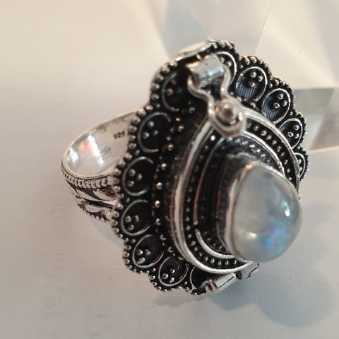 Poisonring i sølv 925 med larimar og lukket rom.