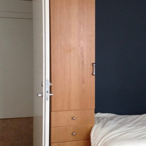 Bakveggen ble litt skadet ved demontering, i spikerfestene, men kan fint festes på igjen i nye hull.