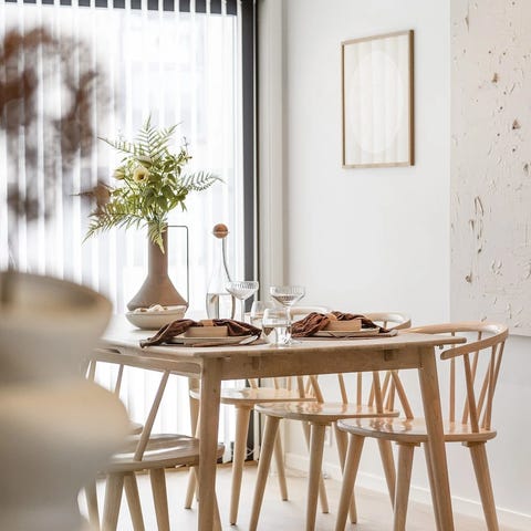 Rundt spisebord med ileggsplate fra Vannerup møbelfabrikk. Bord: Ø120 (til fire sitteplasser) + 45 cm ileggplate. Med ileggsplate måler bordet 165cm x 120cm. Mulig å sette inn en ileggsplate til. Bordet er i heltre hvitoljet eik. 6 stk Chilli Stressless spisestoler fra Ekornes i grått ullstoff med svart svingbart understell. Kjempegode å sitte i hele kvelden. Ny pris pr stol er over 9000 kr.