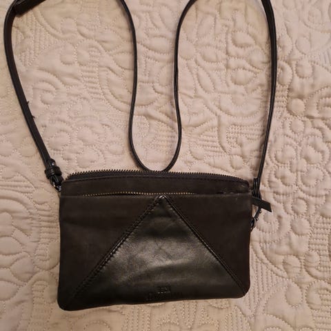 Brukt veske, men det synes jeg bare gjør den kulere. Skinnet er fra Ål. Håper noen vil bruke den:) Selges til prisen eller hbo
