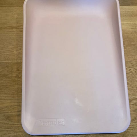 Pent brukt grå Leander stellematte. Den fremstår pent brukt. Små bruksmerker, se bilder. Gummiknottene på undersiden mangler. Vi har ikke opplevd at det har hatt noen betydning for bruken.