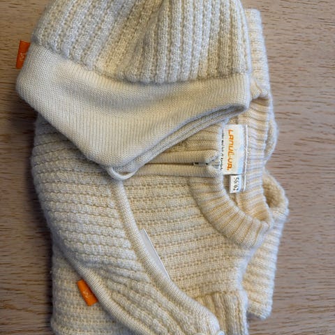 Hust & Claire ull lue for barn, størrelse 50, unisex. Luen er brun og laget av ullmateriale, med design som dekker hodet og halsen for ekstra varme.