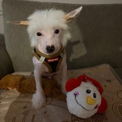 Vi har en eldre valp ledig. Han heter Brody og er en chinese crested hanne, med bra nakenhet. Han koster enten 9000 eller 15000kr, prisen avhenger av hvilken kjøpsavtale man blir enige om.