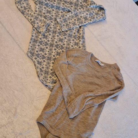 Varme bodyer name it body 100 %ull, Heldre Løv body 70%ull og 30%polyester.
