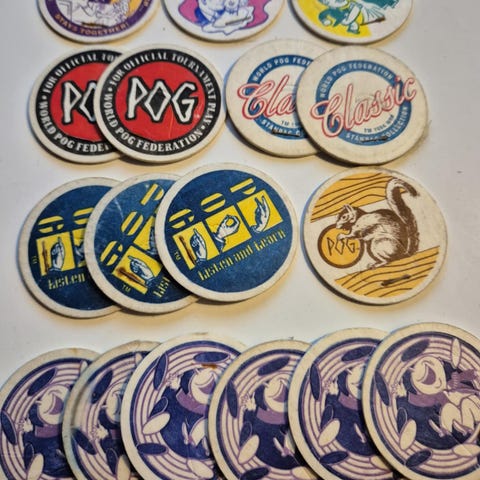 Er 24 pakker i denne og det er 5 pog og en slammer i hver pakke.