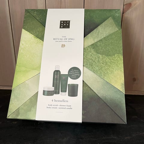 Settet fra The Ritual of Jing er den perfekte introduksjonen til Rituals og er en ideell gave til noen du er glad i eller til deg selv. Det kombinerer tre avslappende bestselgere: Et dusjskum, samt kroppskrem og kroppsskrubb. Alle er beriket med de beroligende ingrediensene lotus og jujube. Saltskrubben inneholder også stressavlastende magnesium og en rik blanding av oljer for å fjerne døde hudceller grundig og tilføre fuktighet til huden.