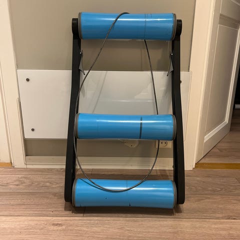 Følger med 2x Tacx Trainer Tyre sykkelrulle dekk med størrelse 26 x 1.25 i blå farge. + en slange og tre brukte dekk.