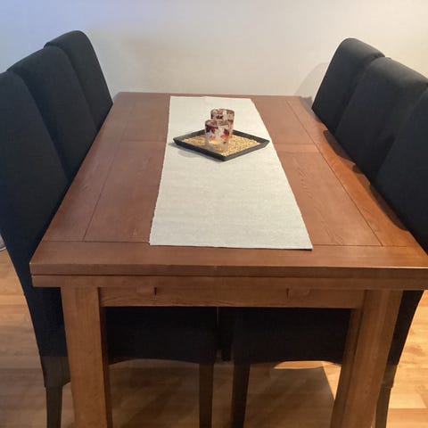 Selger 4 stk av spisestol KLARUP svart fra Jysk. God stand. Nypris i dag er 699kr / stk, eller 1099 / 2 stykk. Selges samlet for 1700kr. Hentes i Oslo.
