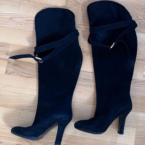 Vagabond Andre sko i størrelse 38, laget av svart skinn. Skoene har en firkantet tupp og en blokkhæl. Det er glidelås bak på skoene for enkel av- og påkledning.