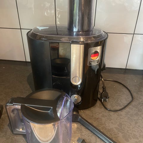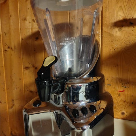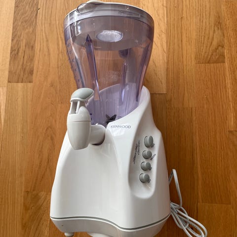 Stilig blender i sølvgrå utførelse. Kraftig motor på 500 watt med blader i rustfritt stål. Både knuser og blander frukt og is. Tappekran i front for påfylling i glass.
