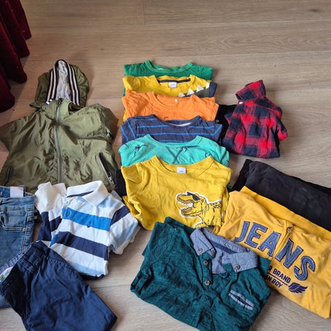 Barnehagevotter i grønn/grå ull og Marvel-hansker str 98/104, 50kr per par. De passer ca samme alder