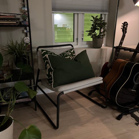 God å sitte i. Tykk, beige setepute kan medfølge.