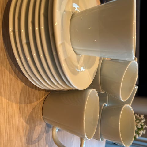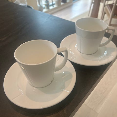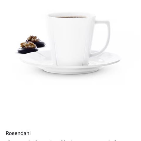 8 stk Rosendahl kaffekopper med skål laget av hvit porselen. Passer til servering av kaffe eller andre varme drikker. Enkelt og tidløst design.