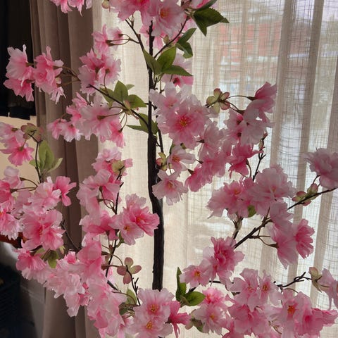 Selger en som ny og eksklusiv håndlaget kunstig kirsebærtre (Sakura) med hvite kronblader og ekte trestamme. Treet er 230 cm høy og er en perfekt dekor til hjemmet eller i butikk.