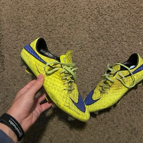 Skoene er brukt men de er i god stand fortsatt. De er sjeldne fotballsko og bra og spille i. Skoene har noen halvskader som på tuppen av den ene skoen.