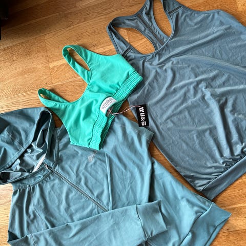 Mørk blå sportsbh fra Aim'n i størrelse S selges. Prøvd på en løpetur, men ble litt for trang for meg.