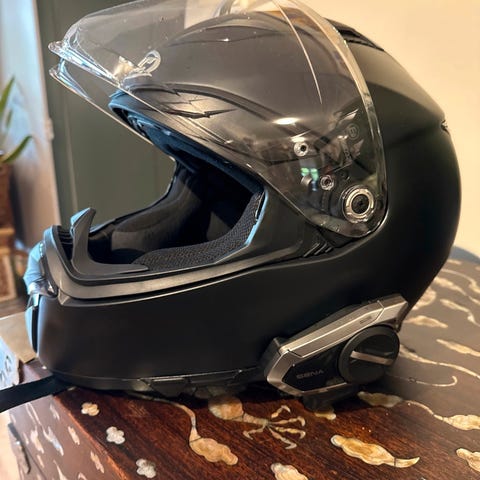Har sotet og klart visir. Det er innnebygd solbriller og.