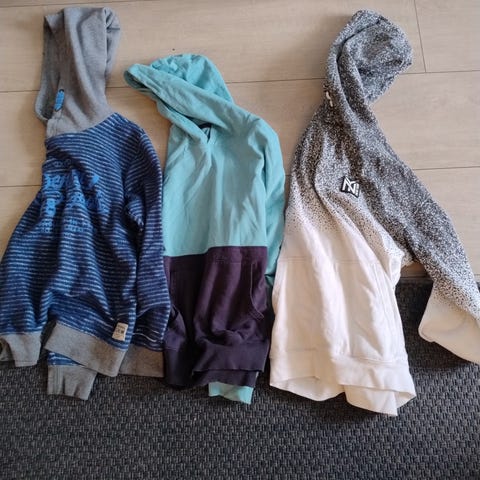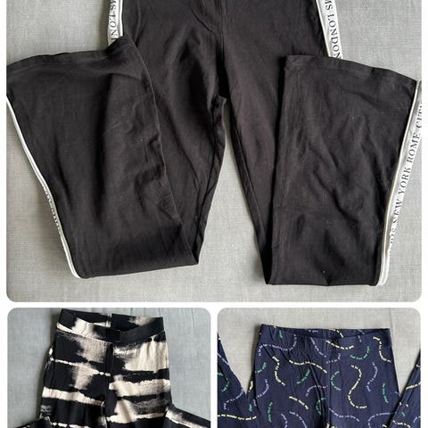 Pakken bestå av joggedress med bukse og genser samt en tights med sleng. Alt er i str 156.