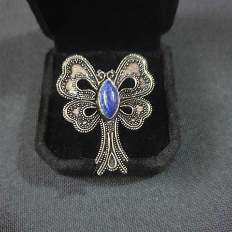 Pæreformet sølvring 925 med Lapis lazulu. ø18 mm