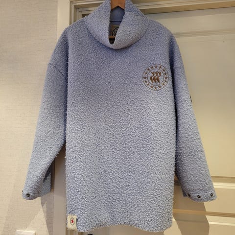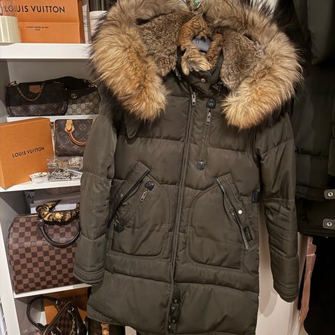 Gott brukt med noen slitasjemerker på armerne og mangler en knapp nederst på jakken.