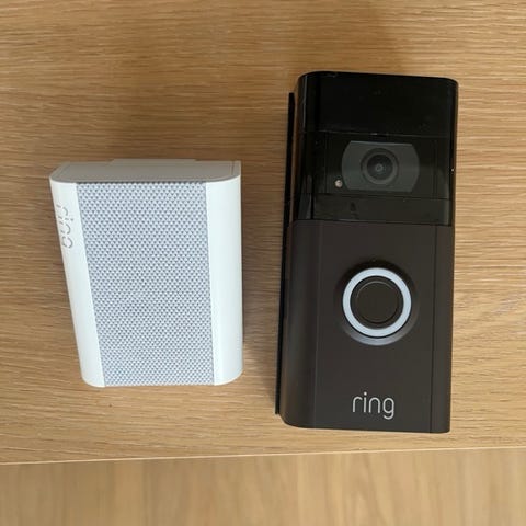 Uåpnet Friedland (Honeywell Home) trådløs ringeklokke DC515N med ringeknapp. Benytter AA batterier (ikke inkludert) og CR2032 i selve ringeknappen (medfølger).