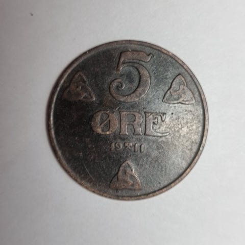 Hullet for 5 øren fra 1911 er ikke gjennomgående. Altså en slags kraftig bulk.
