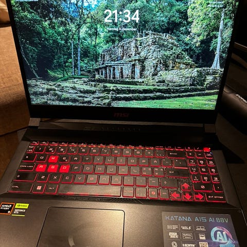 MSI Katana 15 HX B14WGK-408FR-BB7146X32GXXDX11P. Helt ny, kun slått på én gang, levert i original emballasje. Selges pga den ikke blir brukt siden jeg hadde en fra før. Bærbar’en er en god ny PC.