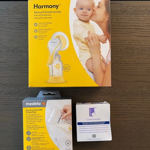 Manuell Brystpumpe. Medela Harmony Flex Manuell Brystpumpe. Selve pumpe ble kun forsøkt brukt 1 gang da jeg gikk over til elektrisk pumpe. Medela flaske ble derimot brukt oftere.