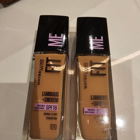 Maybelline Fit Me Foundation i fargen 120 Classic Ivory. Flasken er full, det var bare noen få prøver.