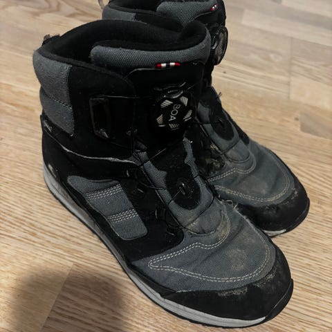 Dkaki vintersko selges. De ble kjøpt nye og er brukt av ett barn.