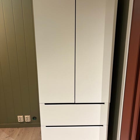 Selger et brukt IKEA skap fra serien platsa. Dørene har noen merker rundt ettermonterte håndtak.