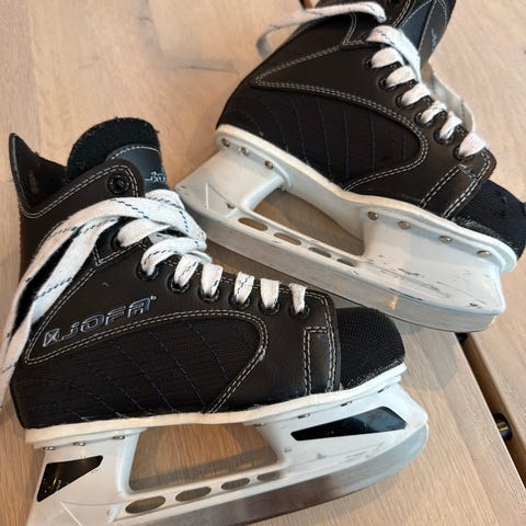 Ishockey skøyter for barn i størrelse 35. Skøytene er designet for ishockey og har svart farge med gule detaljer. Materialet og konstruksjonen er tilpasset for bruk i ishockeysporter.