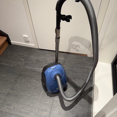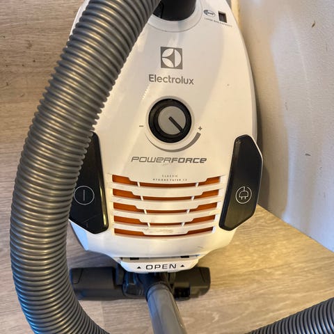 Electrolux støvsuger i hvit farge med slange og gulvmunnstykke. Designet for vanlig støvsuging av gulvflater.