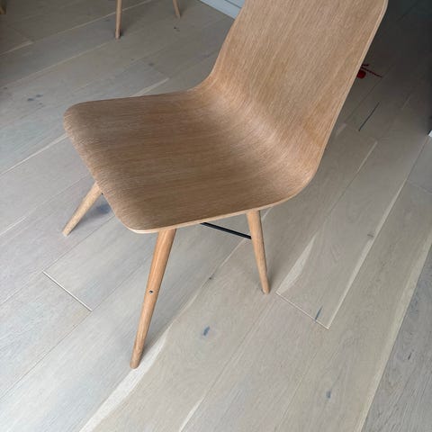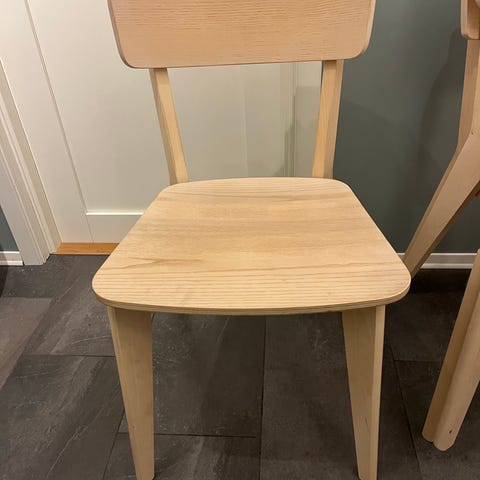 Selger IKEA Skålsta spisestol i eikefinér. Obs, bein i krom/ stålfarget, ikke grå som på bildet fra IKEA. Kjøpt den for ca 6 mnd siden, men tar dessverre litt for stor plass der jeg har den. Selges derfor videre, og rimelig grunnet liten skade på sete- se bildet (litt av finéren er borte). Må hentes